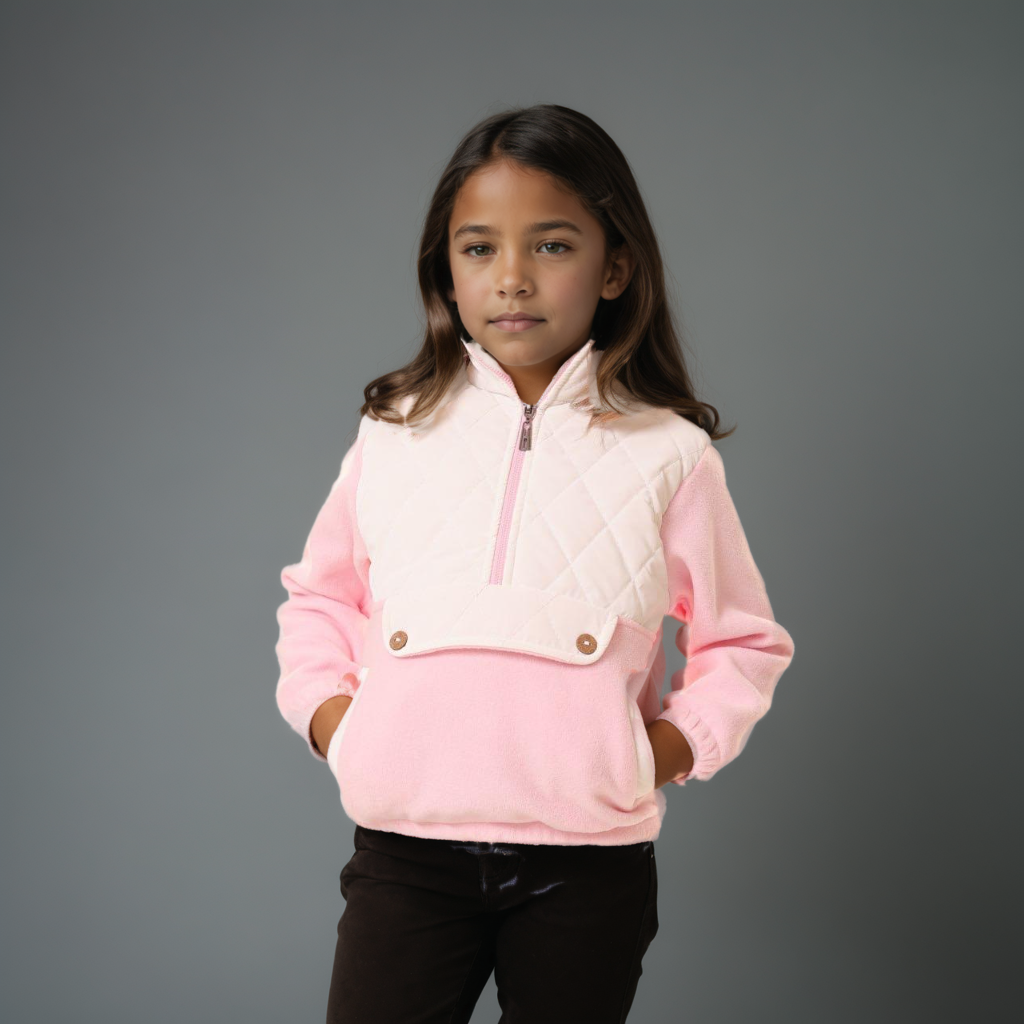 Wrap your child in nature-inspired comfort with The Alpine Bloom. This exquisite pullover is crafted from a premium, incredibly soft winter knit fleece, providing warmth that is perfect for Egyptian cool-season layering. The classic silhouette is elevated by a sweet and stylish vertical ruffle trim that runs down the shoulder, adding a touch of sophisticated femininity. It's a cozy yet chic piece ideal for both casual and smarter weekend wear.