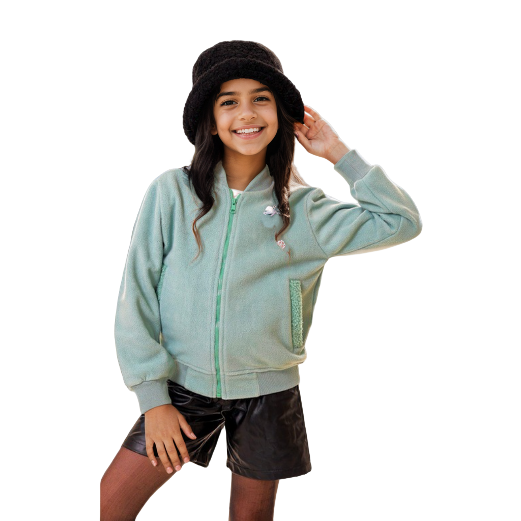 Meet the ultimate layering essential: The Everyday Bomber Jacket. Crafted from a soft, high-quality rib-textured fleece, this jacket provides superior warmth without bulk, making it ideal for the varying temperatures of the Egyptian winter. It features the timeless bomber silhouette with a full-zip front, comfortable elasticized cuffs and hem, and a small, stylish badge detail. This is your child's go-to piece for school, errands, and weekend play.
