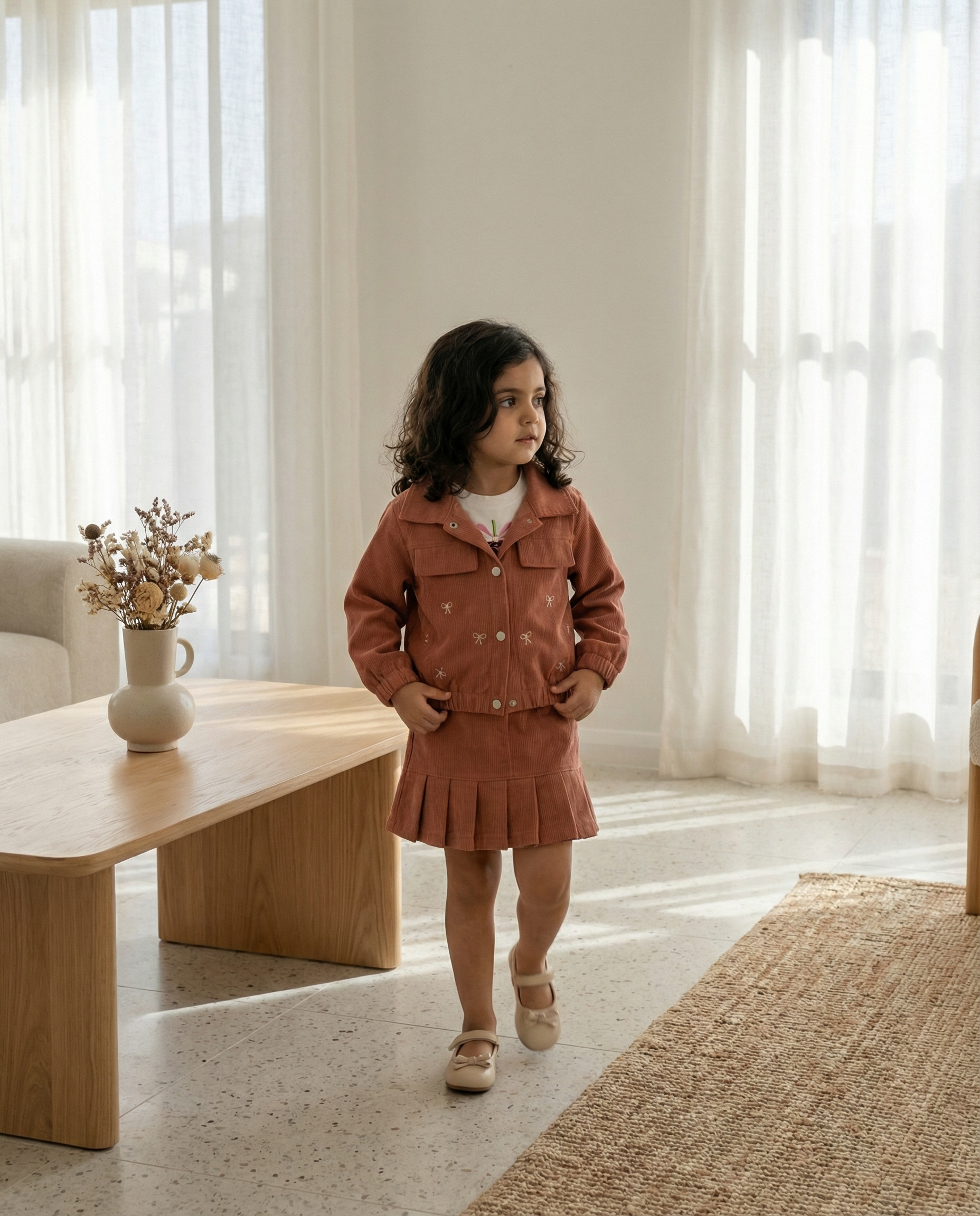 Meet The Ribbon Cord Set – a perfectly coordinated 3-piece set featuring a jacket, skirt, and t-shirt!